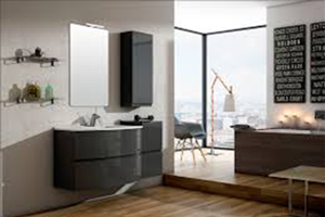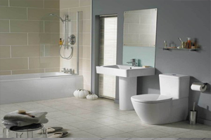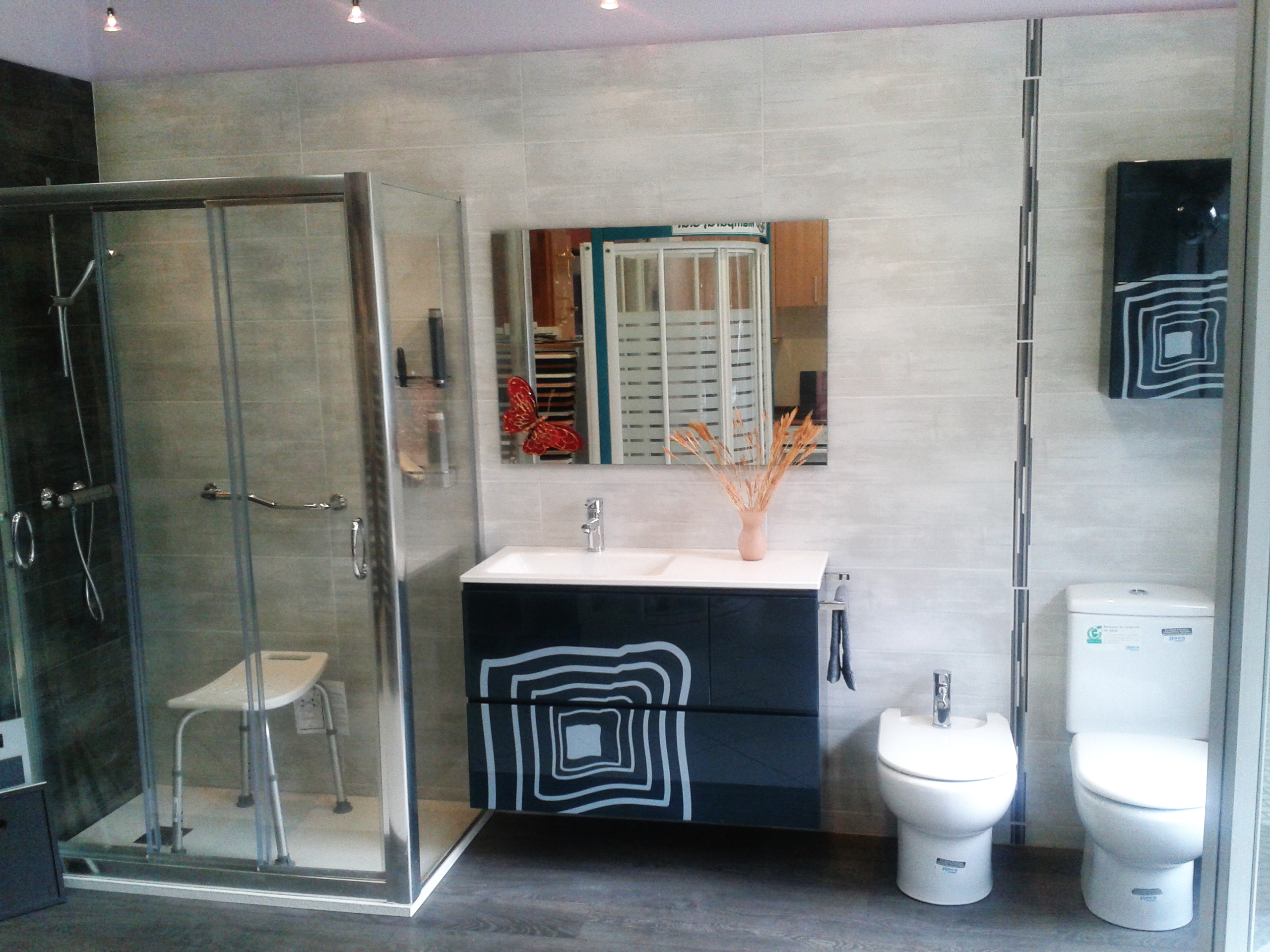 Una atractiva composición con toques de color gris combinada con sencillos sanitarios.